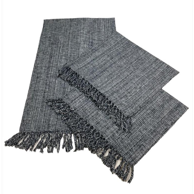 Acabamento artesanal: franjas amarradas à mão, garantindo um toque exclusivo e sofisticado