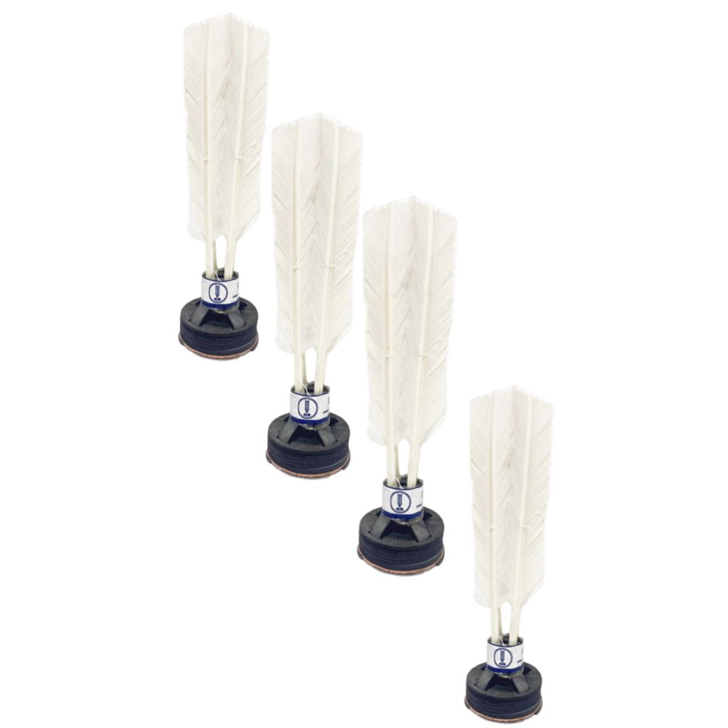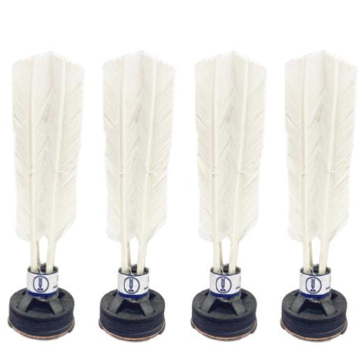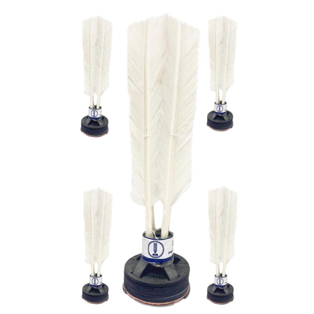 Material: Base firme de borracha e penas naturais/sintéticas