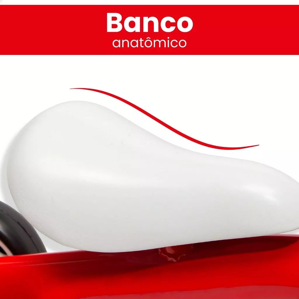 Com design ergonômico e estrutura reforçada, essa bicicleta garante estabilidade durante o uso, permitindo que os primeiros passeios sejam leves e cheios de sorrisos. As quatro rodas de plástico proporcionam firmeza no solo, enquanto o guidão com limitador de giro evita movimentos bruscos, assegurando total segurança durante a brincadeira.