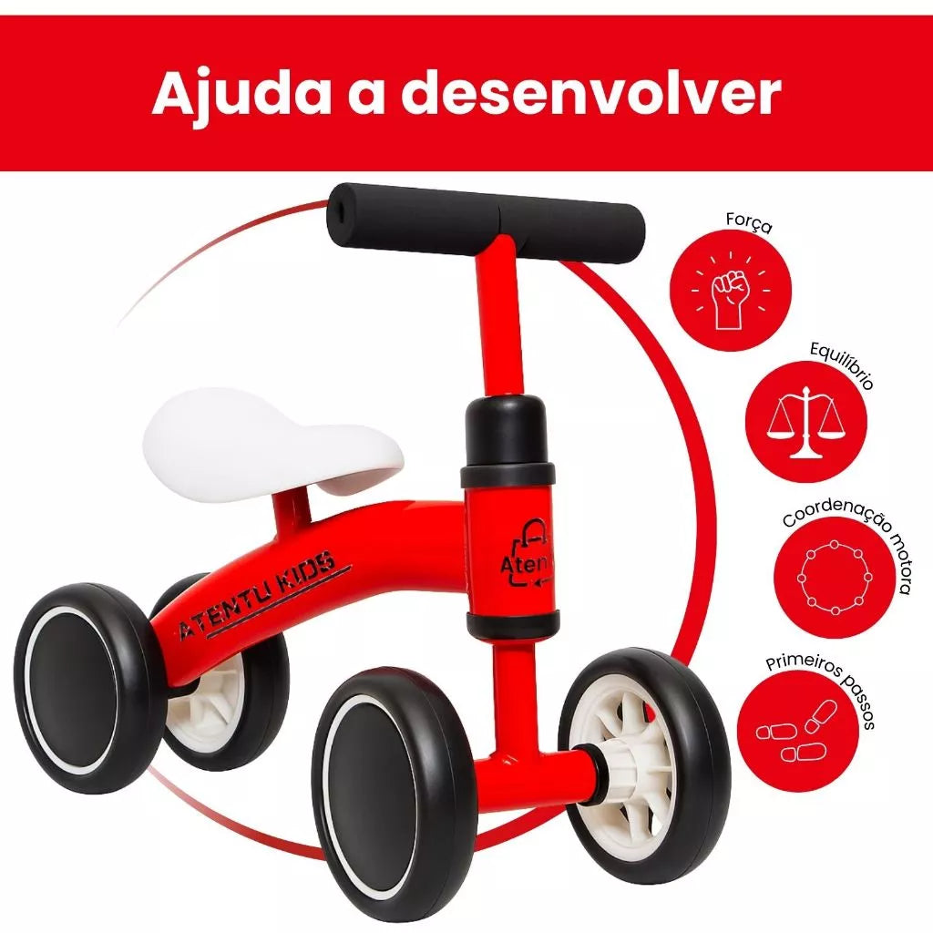 Bicicleta de Equilíbrio Andador Infantil Sem Pedal 4 Rodas